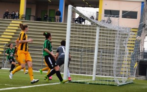 Al 28′ Aurora Galli si produce in una irresistibile percussione centrale, supera tutti ma la sua conclusione viene respinta con il volto dalla numero uno ospite.